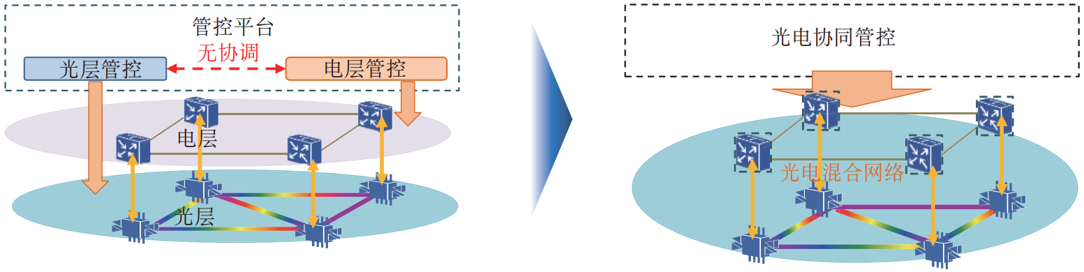 圖2 光電協(xié)同管控促進網(wǎng)絡(luò)向光電聯(lián)動一張網(wǎng)演進