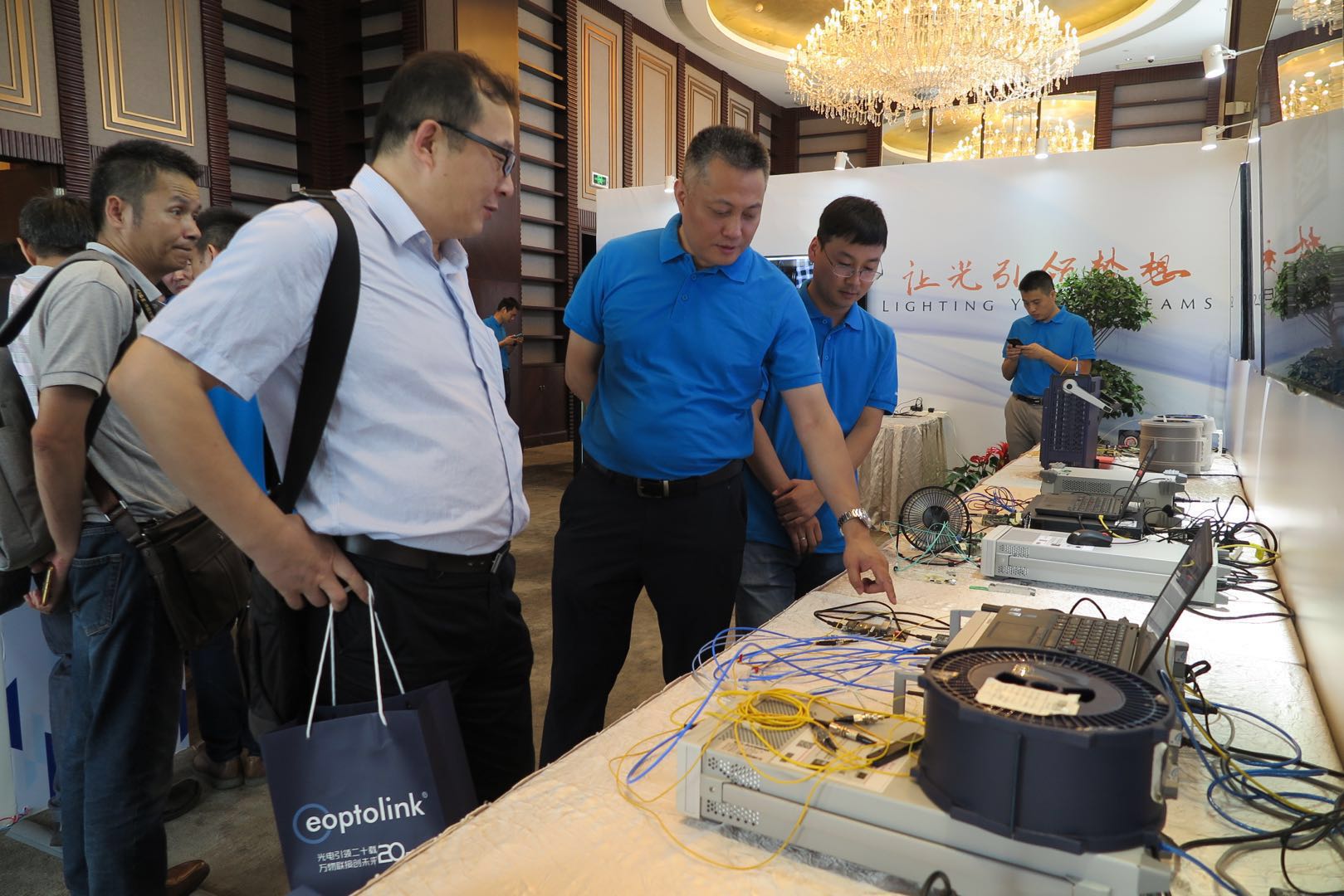推介會邀請了眾多國內外客戶參加,來自設備商、資訊商等專家蒞臨現場溝通咨詢,探討產品和技術未來趨勢。期間,光迅科技重點推介的400G OSFP SR8、50G PAM4 DWDM QSFP28、100G SFP-DD AOC、25G SFP28 Bidi等產品吸引專家紛紛駐足,成為本次推介會最閃亮的焦點。