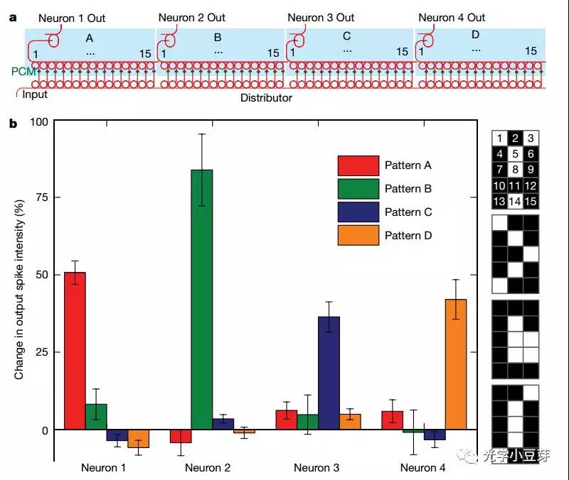 Nature昨天刊登了德國明斯特大學的一篇最新進展,研究人員在光芯片上實現(xiàn)了脈沖神經(jīng)網(wǎng)絡(luò)(spike neural network)。先睹為快,這篇筆記主要介紹下這篇進展。研究人員將氮化硅波導與相變材料結(jié)合,實現(xiàn)了監(jiān)督式和非監(jiān)督式的機器學習,并演示了對15個像素圖片的模式識別。