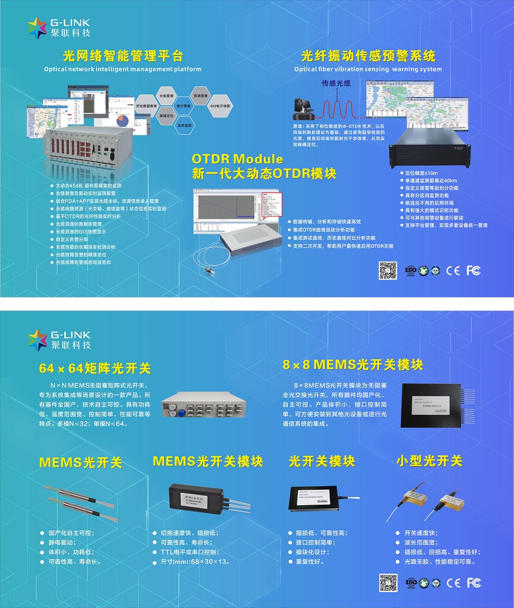 ICC訊 (編輯:Nicole) 9 月16-18日,第23屆中國國際光電博覽會在深圳國際會展中心(寶安新館)舉辦。桂林聚聯(lián)科技有限公司(以下簡稱:聚聯(lián)科技)攜光纜故障追蹤儀、光纜普查儀及光時域反射儀等系列儀器設備,光開關、網(wǎng)絡智能管理平臺及光纖振動傳感預警系統(tǒng)等成功參展!
