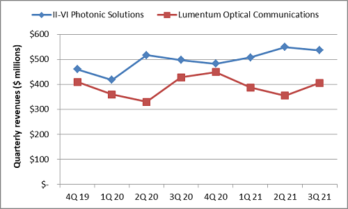 然而,II-VI還表示,供應(yīng)鏈問題僅影響電信產(chǎn)品,并沒有延遲數(shù)據(jù)通信產(chǎn)品的發(fā)貨。Lumentum報(bào)告稱,公司工業(yè)和消費(fèi)產(chǎn)品線以及商業(yè)激光器部門的收入抵消了半導(dǎo)體供應(yīng)鏈短缺對(duì)其電信和數(shù)據(jù)通信產(chǎn)品線的影響。