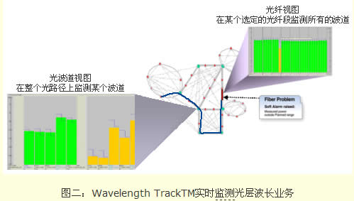 在降低光網(wǎng)絡(luò)的初始投資成本和運維成本目前看似有一定的矛盾之處,即一般認(rèn)為OEO的處理方式可以實現(xiàn)類似SDH的運維管理,容易實現(xiàn)網(wǎng)絡(luò)的管理和維護(hù),但這種方式要求設(shè)備具備足夠的電交叉處理能力,初始投資和設(shè)備功耗居高不下。相反,基于WSS等技術(shù)的OOO處理方式可以將業(yè)務(wù)盡可能處理在最低的層面,網(wǎng)絡(luò)初始投資和功耗最低,但通常運營商對全光業(yè)務(wù)的管理缺乏足夠的手段。本文主要介紹阿爾卡特朗訊基于Wavelength TrackTM技術(shù)所實現(xiàn)的對全光網(wǎng)絡(luò)的類似SDH管理能力。