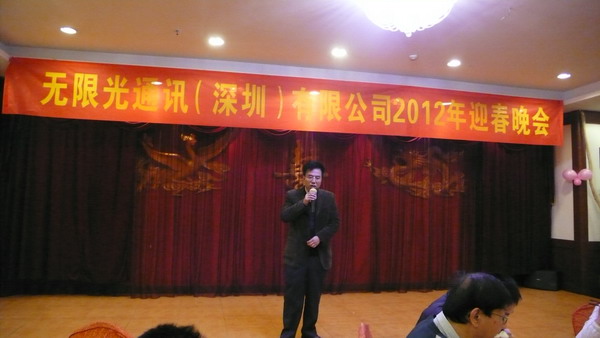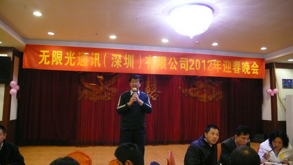 程總在新春祝詞說到:回顧2011,我們也經(jīng)歷了光通信市場的艱難時刻,無限光也走過了艱難的一程,特別是在年終時生意比較淡,但是無限光克服了困難,依然保持了足夠的出貨量,而2012年初我們是忙得不可開交,春節(jié)后訂單也會更多,這其中離不開全體員工的一起努力,一起堅持,感謝大家能夠堅守在自己的崗位上,為公司出力,感謝供應商的支持,相信在迎來2012的同時將會迎來更多的訂單,同時期待來年大家繼續(xù)努力,共同發(fā)展,共同進步!同時最后程總也呼吁大家春節(jié)回家好好休息團聚,節(jié)后以更加充沛的精力投入到工作中,同時也歡迎介紹親朋好友過來工作,最后祝愿大家新春愉快!這也是一個特別的致辭,致辭中也反饋出程總對今年市場的積極樂觀,也期待更多人員的加入。