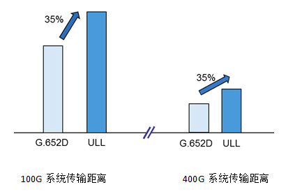 2、ULL光纖支持100G、400G大容量系統(tǒng)傳輸距離增加30~40%