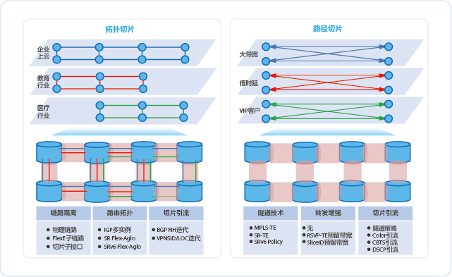 IP網(wǎng)絡(luò)切片技術(shù)方案,主要從技術(shù)實(shí)現(xiàn)層面考慮如何將一張物理網(wǎng)絡(luò)切分為多個(gè)邏輯網(wǎng)絡(luò),具體可以分為兩大類:拓?fù)?A href="http://m.n2software.net/site/CN/Search.aspx?page=1&keywords=%e5%88%87%e7%89%87&column_id=ALL&station=%E5%85%A8%E9%83%A8" target="_blank">切片和路徑切片(見圖1)。