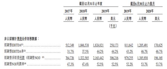 營(yíng)收反映較快的擴(kuò)張速度以外,EBITDA與NOI也是IDC行業(yè)的關(guān)鍵指標(biāo)。NOI(營(yíng)運(yùn)經(jīng)收入)剔除了與項(xiàng)目運(yùn)營(yíng)無(wú)關(guān)的收入和成本。2017至2019年及2020上半年,經(jīng)調(diào)整EBITDA率分別為31.7%、37.5%、44.2%和46.7%;2018、2019及2020上半年,其同比增速為104.3%、74.3%和48.5%。同期經(jīng)調(diào)整NOI利潤(rùn)率為47.3%、47.4%、52.5%和53.7%。規(guī)模效應(yīng)擴(kuò)大下,運(yùn)營(yíng)效率逐漸提升。