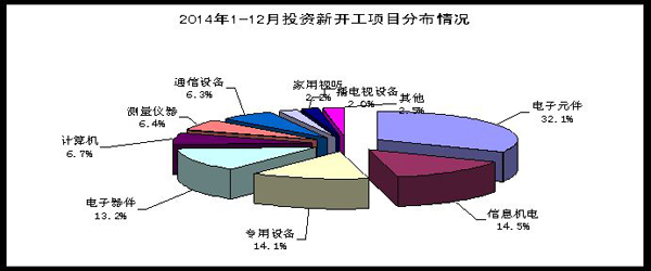 據(jù)悉,2014年1-12月,電子信息產(chǎn)業(yè)新開工項(xiàng)目8028個(gè),同比增長(zhǎng)1%。其中,通信設(shè)備增長(zhǎng)0.2%。