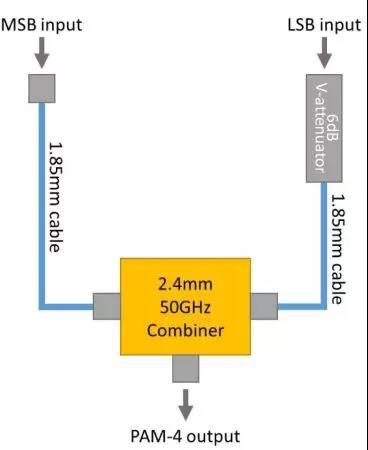 早期的誤碼儀都是通過2路NRZ高速碼型發(fā)生器輸出信號后,經(jīng)過無源的射頻器件(即通過衰減器和合成器)來合并成一路PAM4信號,PAM4應(yīng)用出現(xiàn)早期到目前主流的PAM4信號發(fā)生器都是延用這種方式。