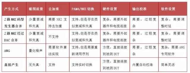 下面的表格總結(jié)了上述四種PAM4誤碼儀下信號產(chǎn)生的不同方式以及特點(diǎn)。