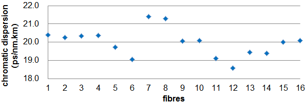 從中國聯(lián)通哈密-巴里坤試點(diǎn)中鏈路色散測試結(jié)果來看,色散參數(shù)指標(biāo)均滿足標(biāo)準(zhǔn)要求,如圖所示。