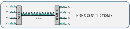 時分復(fù)用是一種通過使用越來越小的時間增量來傳輸更多的數(shù)據(jù)的方式,并且將較低數(shù)據(jù)率的信號復(fù)用進(jìn)較高速度的復(fù)合信號中。通過時分復(fù)用,較低速度的電信號交錯在時間中,并在較快的復(fù)合光路上傳輸。因此,所得的較高數(shù)據(jù)速率將是單個輸入速率的數(shù)倍。