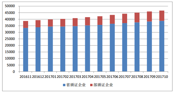 截至 2017 年 10 月底,全國 ISP 持證企業(yè)共 3411 家,其中工業(yè)和信息化部許可的跨地區(qū)企業(yè) 1399 家,各省(區(qū)、市)通信管理局許可的本地企業(yè)合計(jì) 2012 家,較上一月分別增長 1.52%、3.10%、0.45%。
