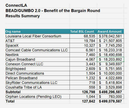 路易斯安那同樣計(jì)劃為約12.7萬(wàn)寬帶服務(wù)區(qū)域中的80%部署光纖,較最初95%的目標(biāo)略有下調(diào)。值得注意的是,SpaceX星鏈雖獲得770萬(wàn)美元覆蓋1萬(wàn)多區(qū)域,但資金額仍低于AT&T和康卡特等有線運(yùn)營(yíng)商。