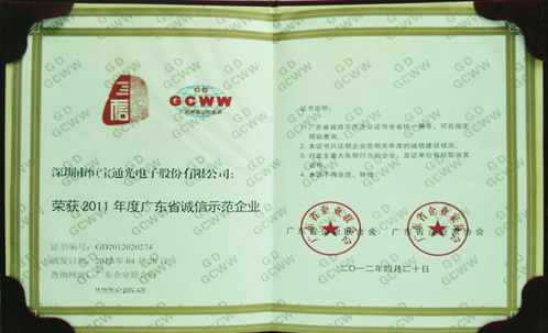日前,深圳市恒寶通光電子股份有限公司被廣東省企業(yè)聯(lián)合會(huì)及廣東省企業(yè)家協(xié)會(huì)授予“2011年度廣東省誠(chéng)信示范企業(yè)”殊榮。“廣東省誠(chéng)信示范企業(yè)”評(píng)選活動(dòng)是廣東省企業(yè)聯(lián)合會(huì)、廣東省企業(yè)家協(xié)會(huì)為建立健全現(xiàn)代市場(chǎng)經(jīng)濟(jì)的社會(huì)信用體系,進(jìn)一步推動(dòng)經(jīng)濟(jì)領(lǐng)域誠(chéng)信體系的建設(shè),在全省重點(diǎn)行業(yè)和企業(yè)中開(kāi)展的創(chuàng)建誠(chéng)信示范企業(yè)活動(dòng)。