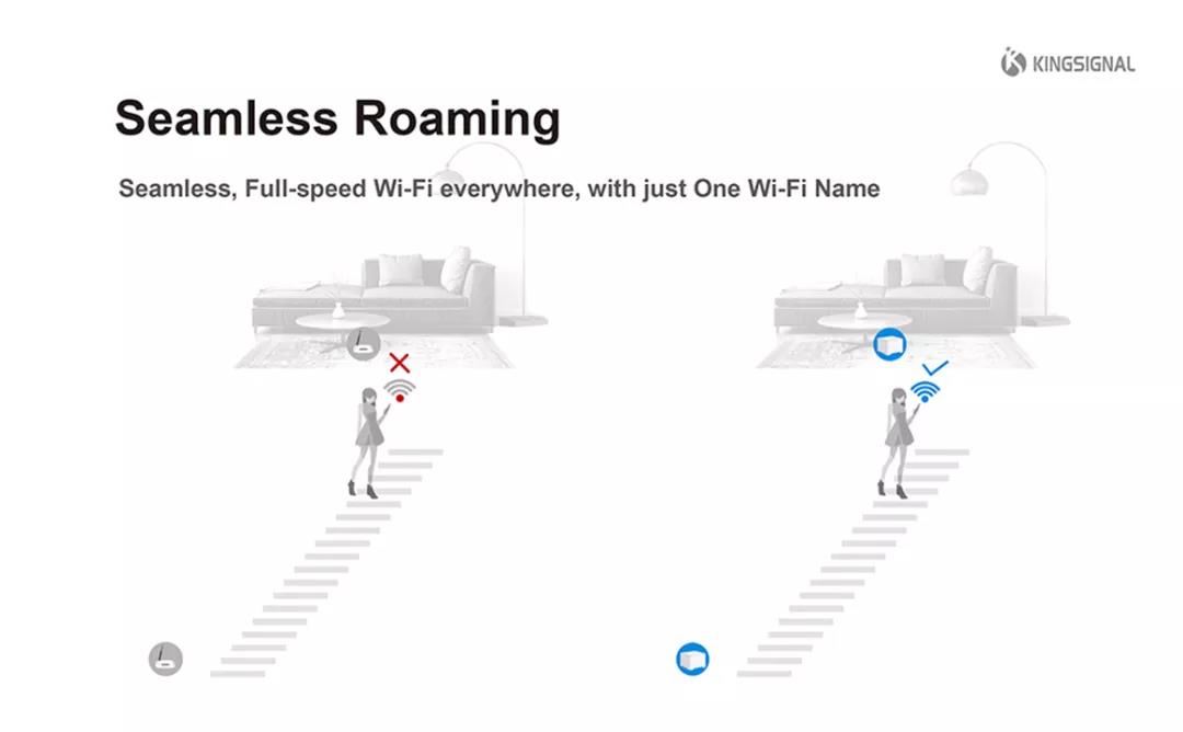 MT1采用了內(nèi)置高增PA芯片及高增益天線的設計,覆蓋范圍較同類產(chǎn)品有明顯優(yōu)勢;在Mesh網(wǎng)絡中,金信諾研發(fā)團隊在軟件算法上做了多次迭代優(yōu)化,發(fā)射端和接入端的各設備都統(tǒng)一管理,憑借統(tǒng)一的網(wǎng)絡名稱(SSID)和密碼便利性,支持802.11k/v/r漫游協(xié)議,實現(xiàn)輕松無縫漫游。