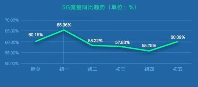 從網(wǎng)絡(luò)流量維度來看,全國5G日均流量同比(同比:與2022春節(jié)數(shù)據(jù)相比,以下表述含義相同)提升60%左右,除夕當(dāng)天流量達(dá)到春節(jié)期間最高值,同比提升超過60%。