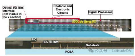 共封裝的關鍵技術之一是實現(xiàn)超高密度電-光 I/O 引腳配準。博通的 SCIP(Silicon Chiplet Photonics Package)技術利用 TSV 和高密度鍵合,實現(xiàn)硅基光電子chip 和 ASIC chip 在 130um 引腳距下對準(圖 1)[1]。高密度短距(<150 um)線路實現(xiàn)了每比特能量效率低于 1pJ,比現(xiàn)有技術提高 10 倍。博通實現(xiàn)高密度三維堆疊芯片級封裝,采用晶圓鍵合的加工過的 ASIC 和光子晶圓 (圖 2)[1]。實現(xiàn)穩(wěn)定的對準和鍵合以及晶圓薄化(75 um)、TSV 開槽均勻性和隱形切割等技術對高密度集成至關重要。隨后基板上順序共封裝鍵合的芯片/光學引擎和 ASIC 利用焊膏回流和精確的底部充填來實現(xiàn)。