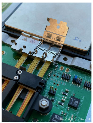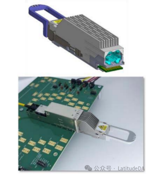 由于硅基光電子無法一體化集成激光器,因此需要使用遠端激光模塊(RLM)提供光源[1]。博通設計實現(xiàn)熱插拔 RLM,遵循 QSFP-DD 標準,單通道提供高達 21dBm 的光功率并實現(xiàn)安全鎖定(圖 3)[1]。RLM 實現(xiàn)與光引擎的連接器盲配對,方便維護更換。