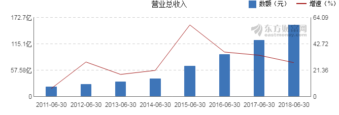 近8年來,該公司同期營業(yè)收入及增速情況如下圖: