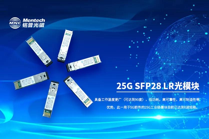 銘普光磁的25G SFP28 LR光模塊,該產(chǎn)品發(fā)射和接收部分均采用銘普光磁自身成熟的同軸封裝平臺,沿用傳統(tǒng)SFP28的柔板焊接工藝,將6路波長復(fù)用到一根光纖上傳輸,相比4波系統(tǒng)光纖使用率提升100%。