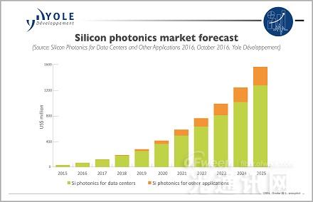 來自Yole的Eric Mounier表示:“硅光子已經(jīng)達到了大規(guī)模增長之前的臨界點。”