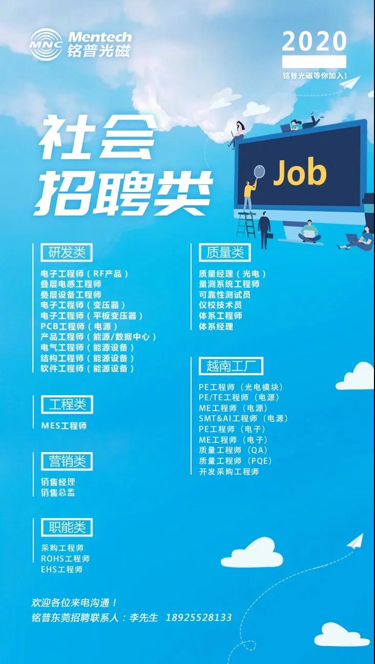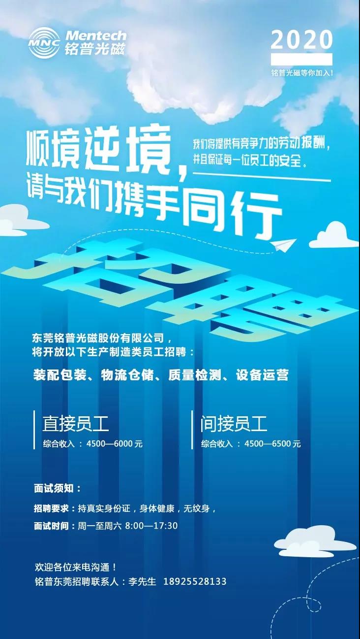 但我們堅信,沒有一個冬天不可逾越,也沒有一個春天不會到來,這場疫情終將會在我們的齊心協(xié)力下成為過去。為了迎接即將到來的春天,作為5G通訊產(chǎn)業(yè)核心及關(guān)鍵零部件的制造商東莞銘普光磁股份有限公司,將持續(xù)開放招聘優(yōu)秀人才,歡迎大家加入銘普光磁,共同邁向5G時代。