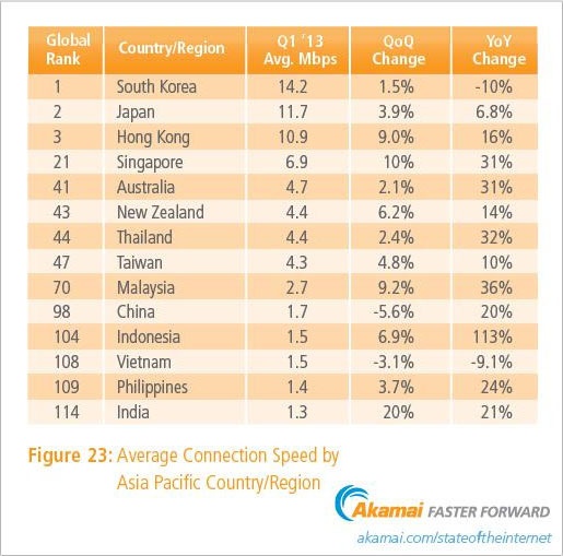 據(jù)悉,中國(guó)平均網(wǎng)速僅有1.7Mbps(同比下降5.6%),全球排名第98位。遠(yuǎn)遠(yuǎn)落后于全球平均網(wǎng)(3.1 Mbps)。在亞太地區(qū),中國(guó)也是網(wǎng)速排名落后的國(guó)家,無(wú)法跟名列前茅的韓國(guó)、日本相比也就罷了,居然落后于泰國(guó)和馬來(lái)西亞。