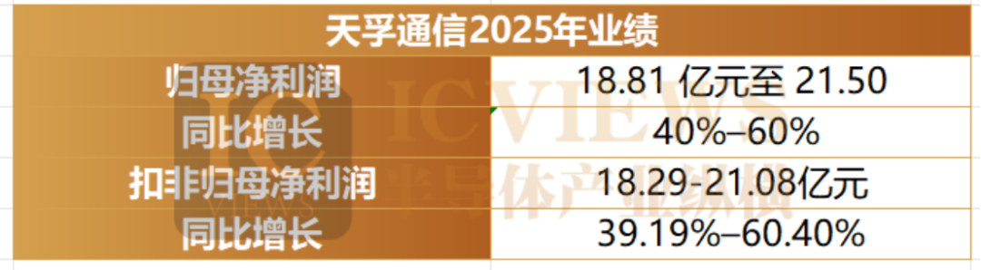 天孚通信披露的業(yè)績(jī)預(yù)告顯示,全年歸母凈利潤(rùn)預(yù)計(jì)為 18.81 億元至 21.50 億元,同比增幅 40%–60%;扣非歸母凈利潤(rùn)預(yù)計(jì) 18.29 億元至 21.08 億元,同比增長(zhǎng) 39.19%–60.40%,業(yè)績(jī)表現(xiàn)符合行業(yè)高景氣度趨勢(shì)。