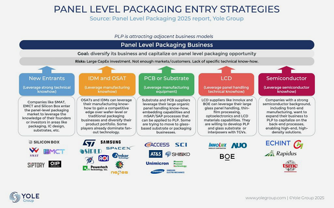 另一個(gè)顯著趨勢(shì)是面板級(jí)制造(Panel-level manufacturing)的興起。資深分析師Gabriela Pereira表示:"除降低成本和提高面積效率外,面板級(jí)封裝還為制造商提供了良好的可擴(kuò)展性、靈活性以及適配其他面板工藝的能力。"隨著采用該技術(shù)的商業(yè)產(chǎn)品增多,Yole將發(fā)布專項(xiàng)報(bào)告《面板級(jí)封裝2025》,重點(diǎn)分析AI和衛(wèi)星市場(chǎng)的應(yīng)用。