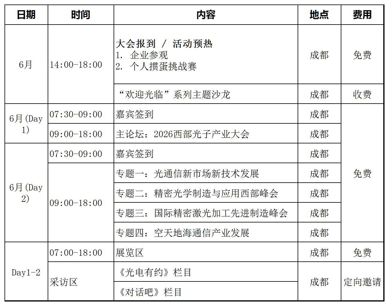 本次大會(huì)既是行業(yè)前沿交流盛宴,更是全產(chǎn)業(yè)鏈資源對(duì)接橋梁,2026年6月,誠(chéng)邀行業(yè)各界精英相約蓉城,共赴西部光子大會(huì),以光為媒、以智為橋,共享發(fā)展機(jī)遇,共繪西部光子產(chǎn)業(yè)發(fā)展新藍(lán)圖!