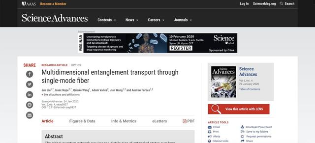 ICCSZ訊 近日,南非約翰內(nèi)斯堡的金山大學(xué)(WITS)物理學(xué)院安德魯·福布斯(Andrew Forbes)教授和他的團隊,以及中國武漢的華中科技大學(xué)光電子科學(xué)與工程學(xué)院王?。↗ian Wang)帶領(lǐng)的團隊共同提出,全球量子網(wǎng)絡(luò)需要長距離分布糾纏態(tài),可以通過一條傳統(tǒng)的光纖鏈路,就能實現(xiàn)多維糾纏傳輸模式的新方法,這將有助于在傳統(tǒng)網(wǎng)絡(luò)中跨傳統(tǒng)光纖進行部署。該項研究成果于1月25日登在了知名科學(xué)期刊《Science Advances》(科學(xué)進步)上。