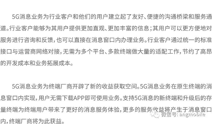 中興通訊表示,愿與三大運營商一起,推動5G消息成為最快落地的5G+業(yè)務應用,攜手共進,共創(chuàng)美好未來。華為表示,將持續(xù)與運營商保持消息領域的長期溝通與合作,共同做大5G消息市場。小米手機后續(xù)將在所有5G機型支持5G消息,積極推動5G消息產品商用。三星正基于運營商最新規(guī)范開發(fā)5G消息業(yè)務,計劃今年內對5G手機全面支持。OPPO表示愿攜手三大運營商及其他終端廠商,從用戶出發(fā),普及5G技術及相關應用,構建共贏、繁榮的5G商業(yè)消息生態(tài)圈。vivo將通過5G消息進行信息體驗升級,給用戶帶來全新的通訊服務體驗。產業(yè)鏈各方同心協力,標志著5G消息即將進入全面加速。