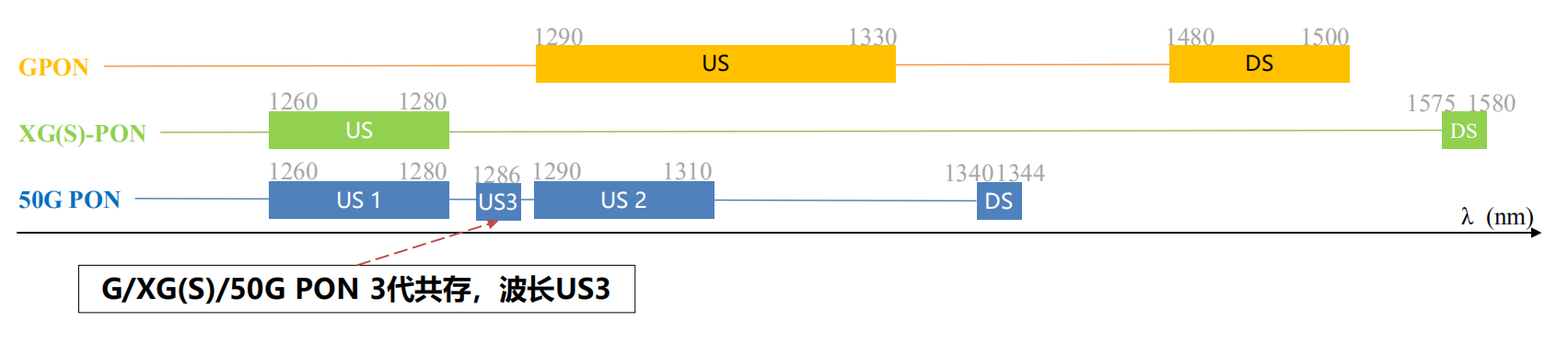 2023年9月4日,中國電信研究院網絡所接入網研究中心總監(jiān)、高級專家張德智先生在訊石研討會上發(fā)表關于50GPON主旨演講,提到幾個技術難點。其中一點:為了共用產業(yè)鏈,50G-PON上行波長傾向于選擇1286±2nm。這里的技術突破難點在于:50G-PON與G-PON的上行波長間隔只有2nm,要實現30dB隔離度的波分復用,難度非常大,需要業(yè)界共同努力做技術攻堅。
