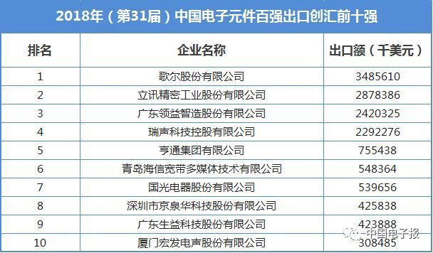 從各企業(yè)的出口規(guī)???,4家蘋果公司的供貨商——歌爾股份、立訊精密、領(lǐng)益智造、瑞聲科技包攬出口額前四位,3家公司的出口總額已經(jīng)達到本屆電子元件百強出口總額的60%。