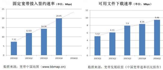 ICCSZ訊 日前,在某公開(kāi)場(chǎng)合,工信部中國(guó)信息通信研究院標(biāo)準(zhǔn)所副所長(zhǎng)敖立稱(chēng),過(guò)去一年,我國(guó)寬帶網(wǎng)絡(luò)提速效果非常明顯,我國(guó)固定寬帶用戶(hù)的簽約接入速率由2015年第一季度的7.32Mbps提升至年末的20.05Mbps,提升高達(dá)2.74倍;文件下載速率由5.12Mbps提升至16年一季度的9.46Mbps,提升達(dá)1.85倍。