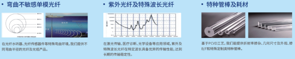 基于PCVD、MCVD工藝的核心特種光纖制造技術(shù),長(zhǎng)飛的特種產(chǎn)品業(yè)務(wù)戰(zhàn)略目標(biāo),是發(fā)展特種光纖以及衍生產(chǎn)品和服務(wù),發(fā)展成為全球特種光纖品種最全、規(guī)模最大的生產(chǎn)、研發(fā)和銷售平臺(tái),應(yīng)用于激光、傳感、國(guó)防、電力、石油石化、通信等領(lǐng)域。