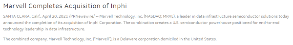 2021年4月20日,Marvell正式完成收購Inphi。