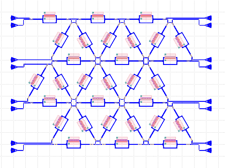 圖2: 使用PhotoCAD生成的三角MZI網(wǎng)格布局