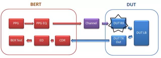 當(dāng)前流行的超過25Gbps的高速電路,功耗非常低,在DUT的發(fā)送端輸出的幅度比較小。當(dāng)構(gòu)建硬件測(cè)試環(huán)境的時(shí)候,DUT的發(fā)送端往往需要經(jīng)過比較長(zhǎng)的電纜連接到BERT的接收端或者外部CDR。在實(shí)際測(cè)試過程中就需要首先通過優(yōu)化DUT的發(fā)送端和BERT的接收端的設(shè)置,保證無(wú)誤碼,才能夠進(jìn)行后續(xù)測(cè)試。