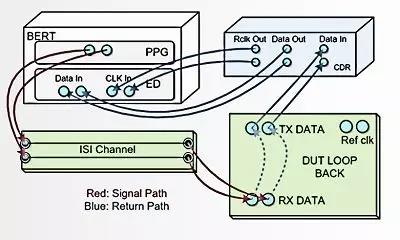 2. PPG輸出連接到ISI通道(背板或者線纜),經(jīng)過通道后的高頻分量衰減;