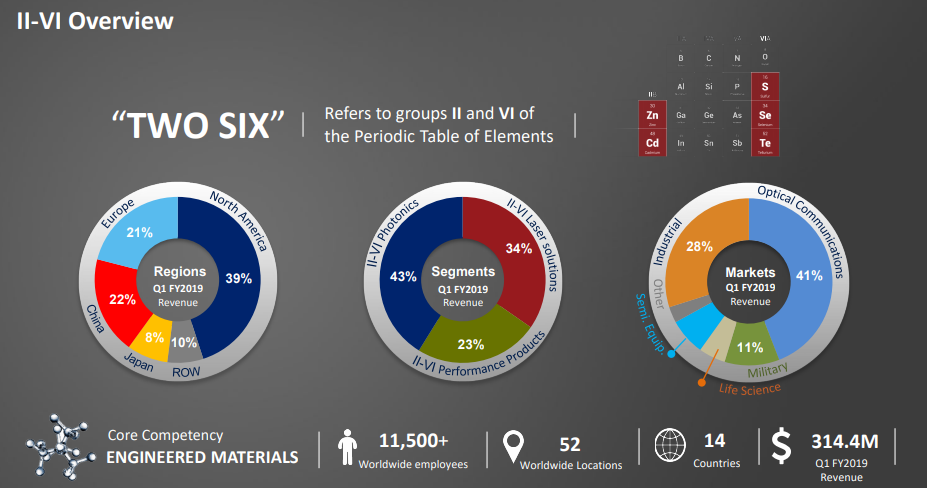 ICCSZ訊(編譯:Aiur)美國(guó)時(shí)間11月1日,II-VI公司公布2019財(cái)年第一財(cái)季(Q1 FY19 即2018.7-9)消息,公司實(shí)現(xiàn)營(yíng)收3.14億美元,同比增長(zhǎng)20%,營(yíng)業(yè)利潤(rùn)3720萬(wàn)美元,同比增長(zhǎng)25%。