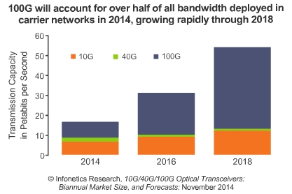 100G WDM和40G QSFP+出貨量的上升;