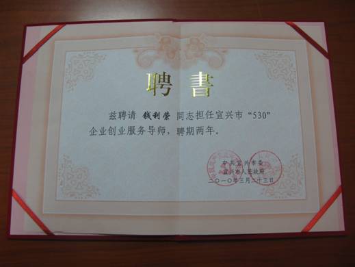近年中,宜興市把實(shí)施“530”計(jì)劃,作為帶動(dòng)產(chǎn)業(yè)轉(zhuǎn)型升級(jí)、提升經(jīng)濟(jì)核心競(jìng)爭(zhēng)力的戰(zhàn)略舉措全力推進(jìn)。為解決引進(jìn)的高層次創(chuàng)新創(chuàng)業(yè)人才遇到的資金、人才引進(jìn)、市場(chǎng)開(kāi)拓等方面的創(chuàng)業(yè)難題,宜興市委、市政府決定聘請(qǐng)包括公司董事長(zhǎng)