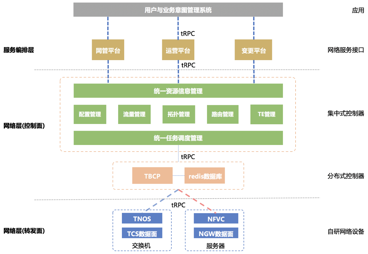 統(tǒng)一資源信息管理和豐富的北向API。網(wǎng)絡(luò)資源信息均保存到騰訊云數(shù)據(jù)庫,控制器通過tRPC跟管理平臺、運營平臺和變更平臺進行交互。豐富的北向API給網(wǎng)絡(luò)的日常運維和故障復(fù)盤分析帶來了極大的便利;