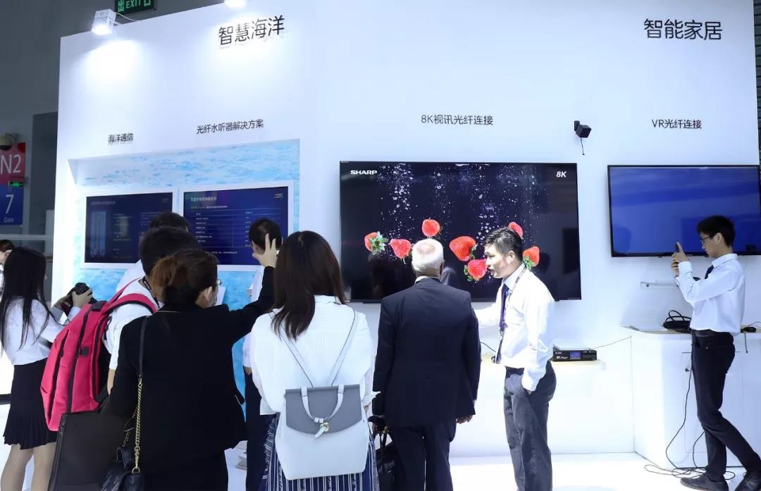 5G時(shí)代的高帶寬、低延時(shí)特性,極大滿足下游產(chǎn)業(yè)鏈 “零”距離實(shí)時(shí)交互的應(yīng)用,驅(qū)動(dòng)8K、VR等應(yīng)用迅猛發(fā)展。在長(zhǎng)飛公司智能家居展區(qū),用實(shí)景模擬家居場(chǎng)景,展示具有超大帶寬的8K HDMI光纖線材,差異化體現(xiàn)長(zhǎng)飛公司AOC線纜相對(duì)傳統(tǒng)銅纜的傳輸優(yōu)勢(shì)。同時(shí)展出的還有高帶寬低延時(shí)VR光纖線,特制柔性線材,無(wú)懼電磁干擾,滿足VR各幅度動(dòng)作而不受損。