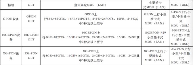 表2 : 中國(guó)電信2017年PON設(shè)備集采設(shè)備型號(hào)要求