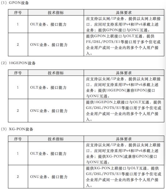 表3 : 中國(guó)電信2017年PON設(shè)備集采相關(guān)技術(shù)要求