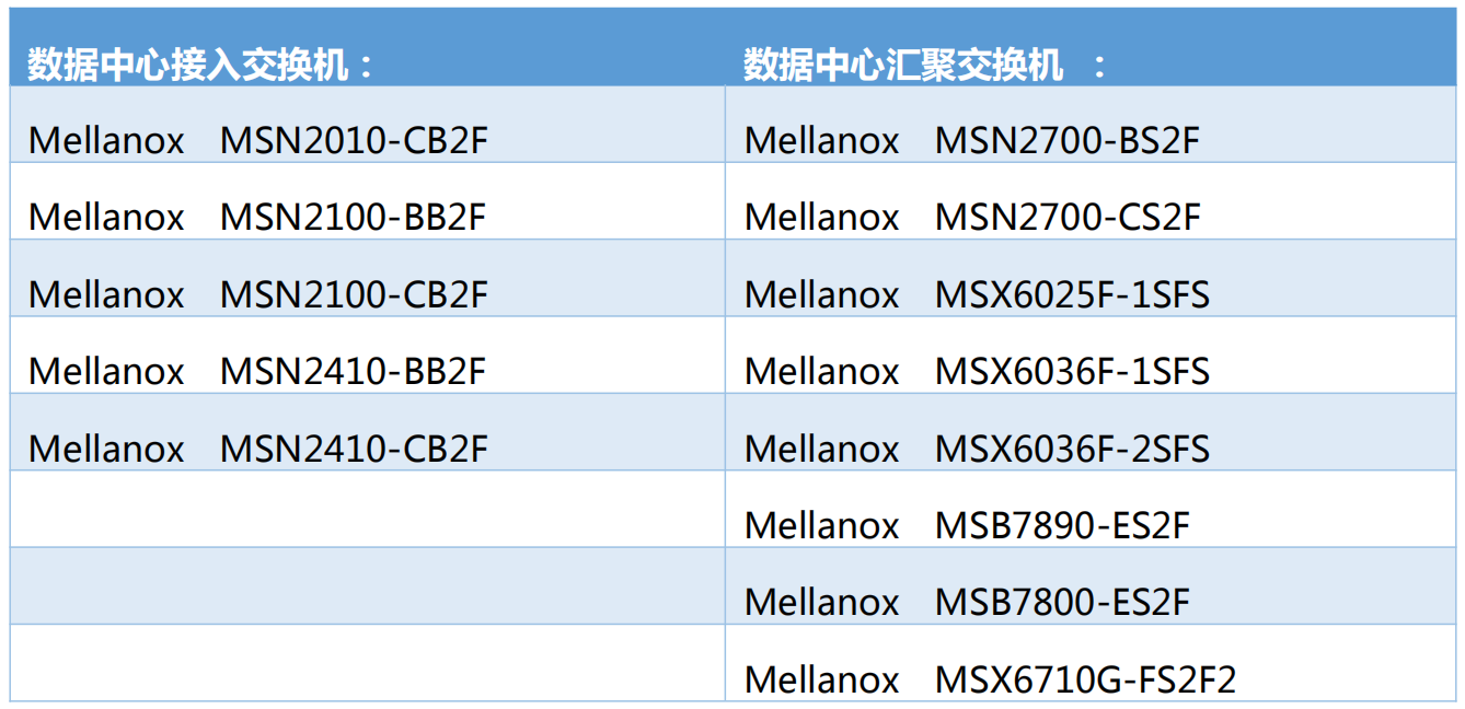 Mellanox進(jìn)入中央政府協(xié)議采購目錄的產(chǎn)品名單如下: