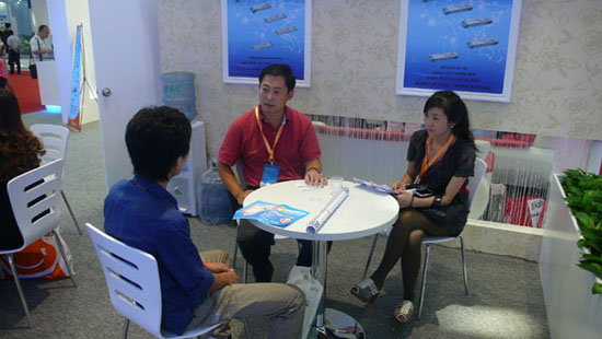 海信寬帶副總經(jīng)理宋文輝(中)在CIOE2011上接受訊石專訪