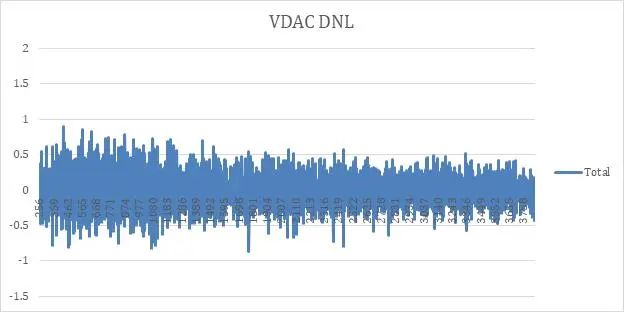 微分非線性度,體現(xiàn)了VDAC輸出直流信號的線性度水平,規(guī)格要求小于±1 LSB。